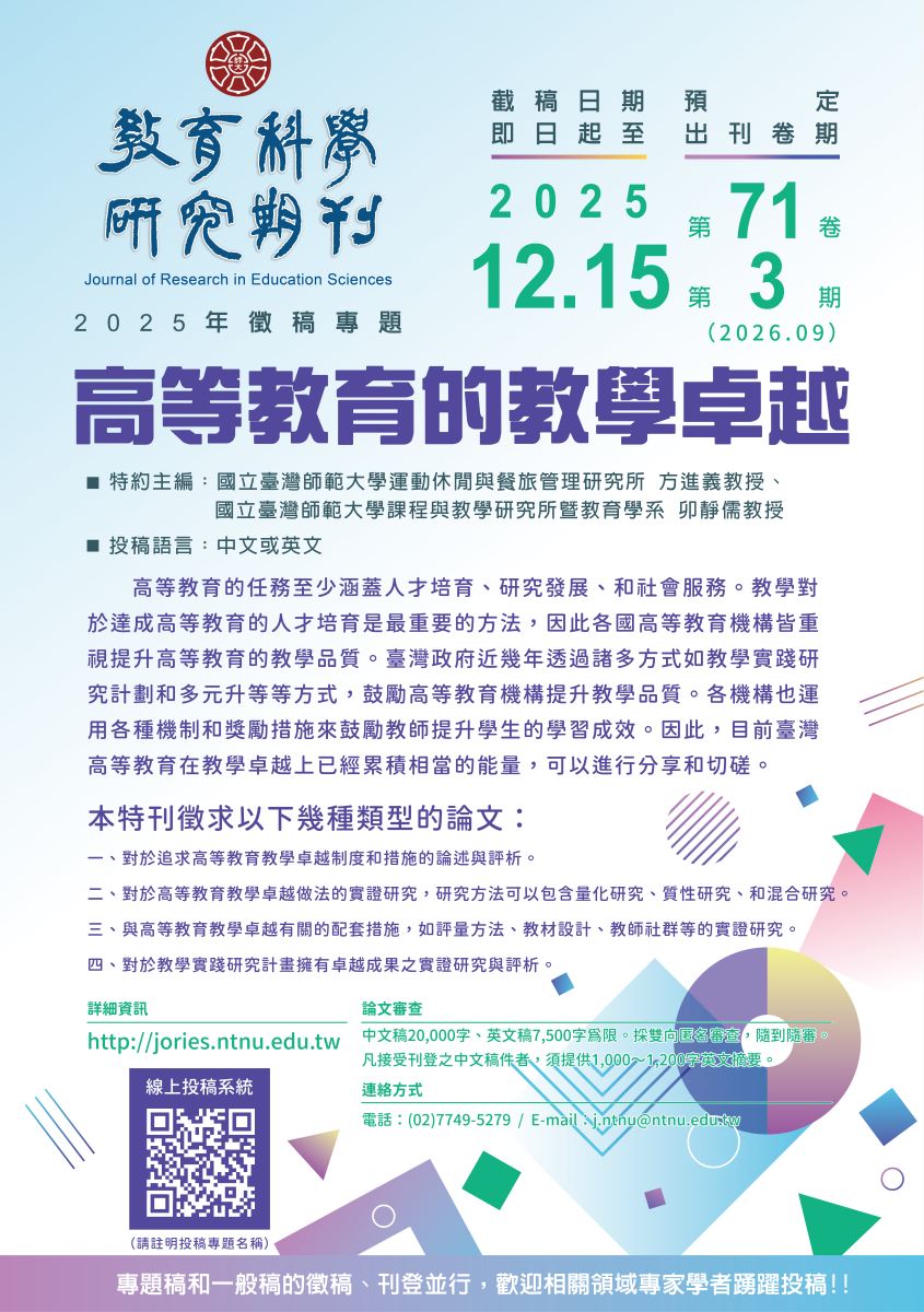 教育科學研究期刊「高等教育的教學卓越」專刊徵稿說明